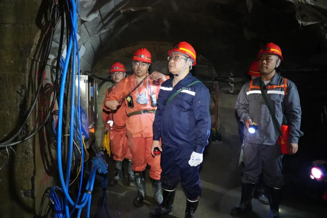 图为督导组在昭平昭金矿业矿井下对设备运行管理进行检查