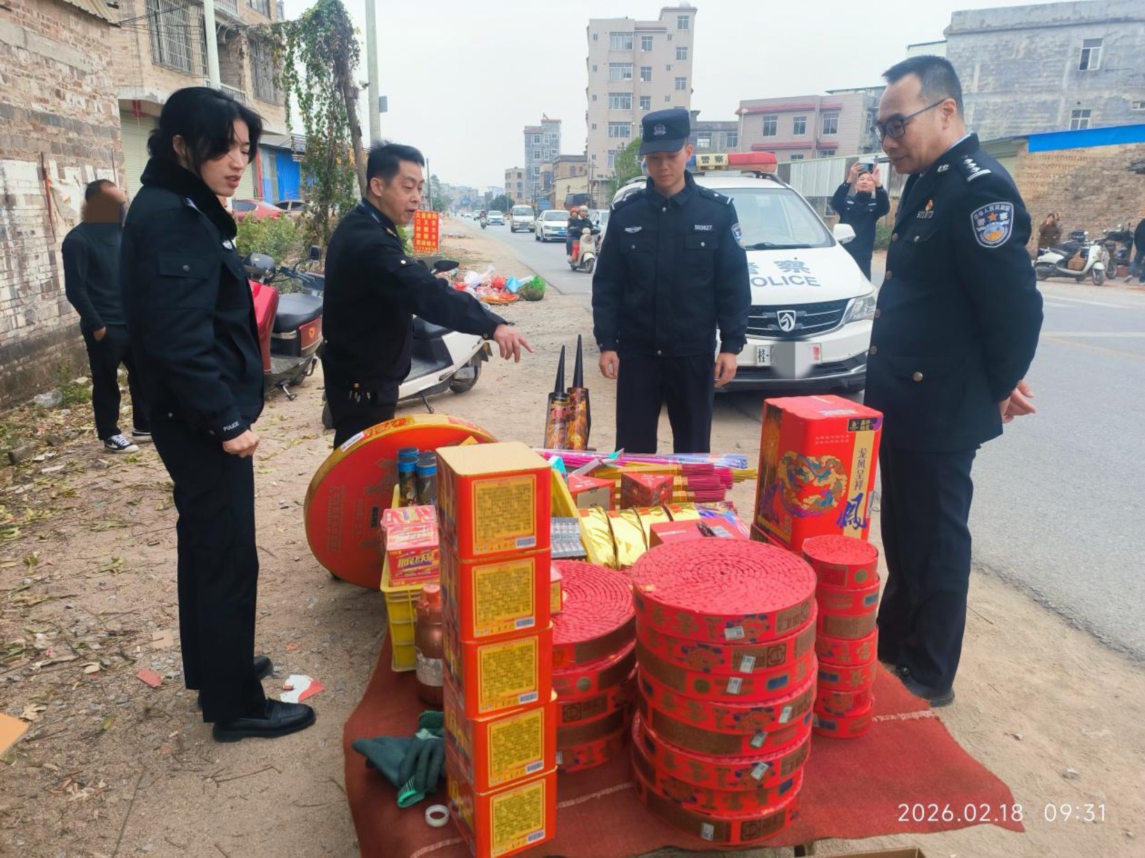 2月18日,玉林市应急管理局联合市公安局在玉林市玉州区与兴业县交界地带排查发现并打击一处非法经营烟花爆竹点。