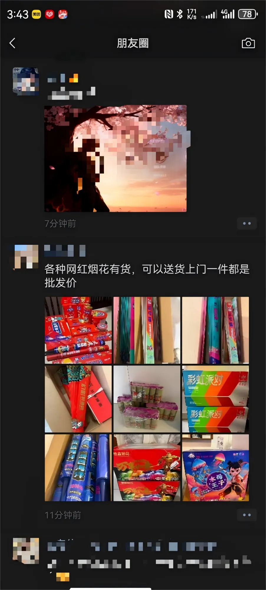 案例二:桂林市兴安县一甜品店通过微信朋友圈销售烟花被查