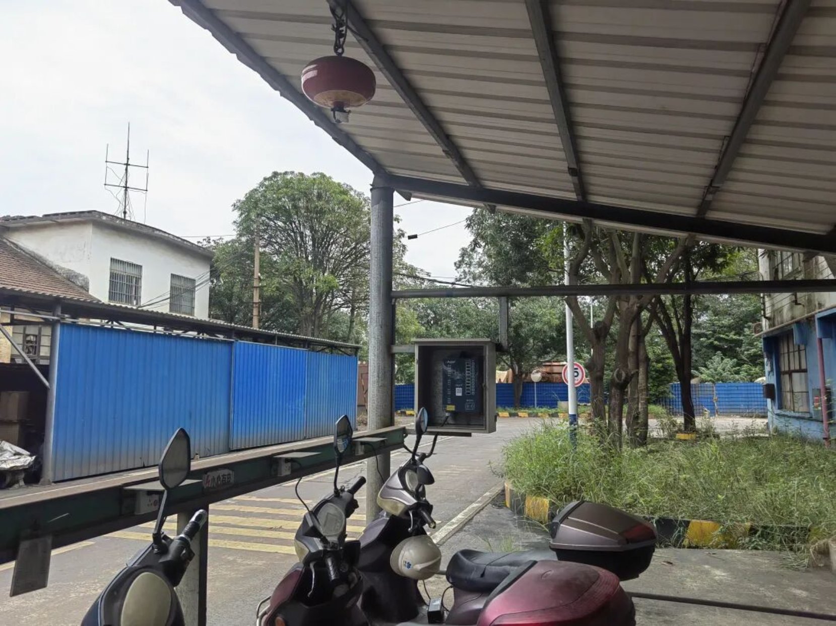 图为加装智能断电装置并悬挂灭火器后的充电桩