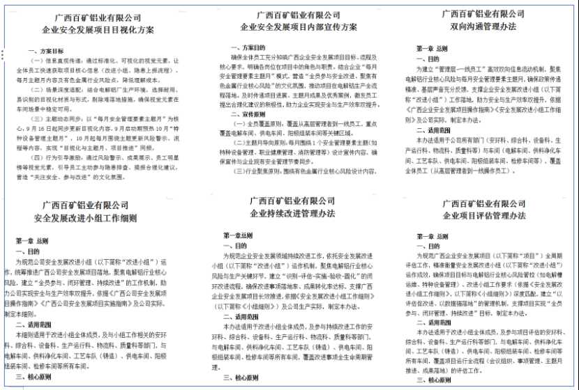 百矿铝业制定的系列企业安全发展项目配套方案和制度