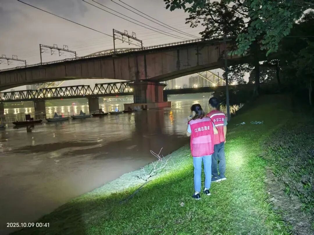 江南区:夜巡脚步不停歇 盯牢江堤保平安
