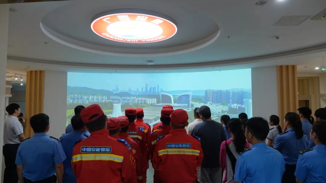 在广西应急安全体验馆,团员青年们通过参加模拟灭火器灭火演练、火灾逃生、绳索救援、安全带碰撞和酒驾毒驾VR模拟等项目,沉浸式感受科技带给应急安全体验的无限魅力,不仅过了一把“瘾”,还在“虚拟+现实”中深深感受到“人人讲安全、个个会应急”的重要性。在广西应急文化展示馆的环形中心,正播放着广西某市“5·6”龙舟水洪水再现的场景模拟,全流程向观众展示应急救援场景,普及应急安全知识。除此之外,大家还可以看到许多曾经参与过突发事件应急处置的各类应急装备。