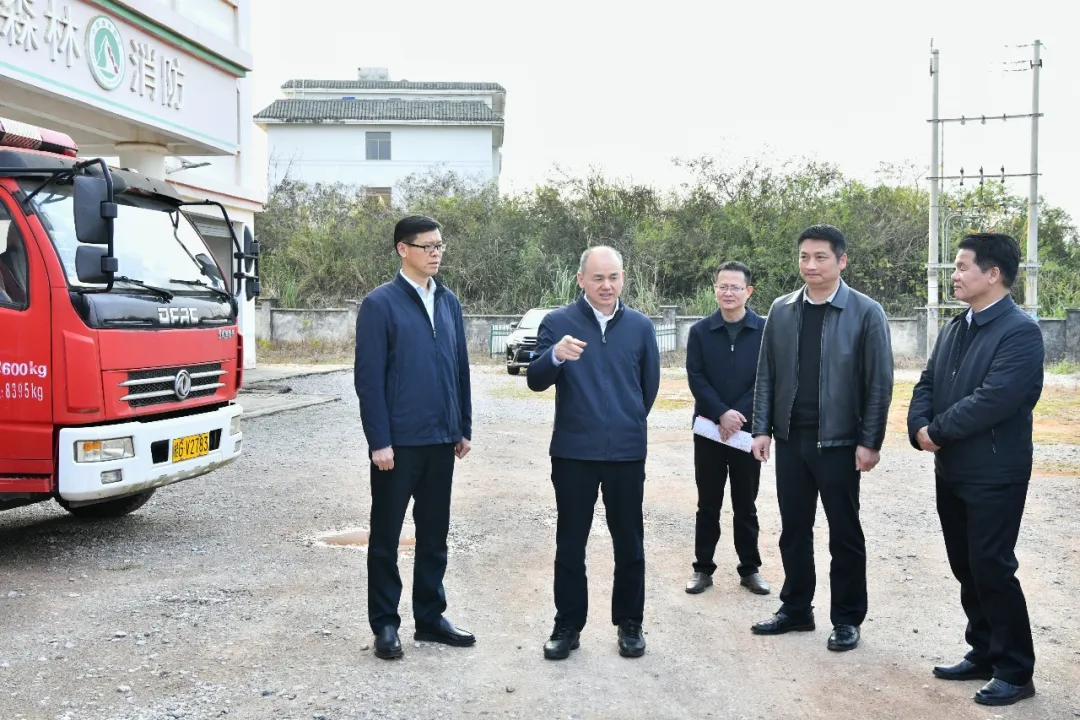 周长青在金秀瑶族自治县桐木镇检查森林消防队伍建设情况。