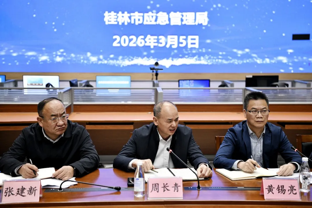 周长青一行来到桂林市应急管理局,检查指导桂林市在全国两会期间安全防范措施落实情况,现场调度部署重点工作。周长青要求,要聚焦重点行业领域,严把安全关,主动靠前服务企业复工复产,从严从细排查整治风险隐患,强化应急值班值守与应急处置准备,以扎实有力举措为全国两会胜利召开保驾护航。