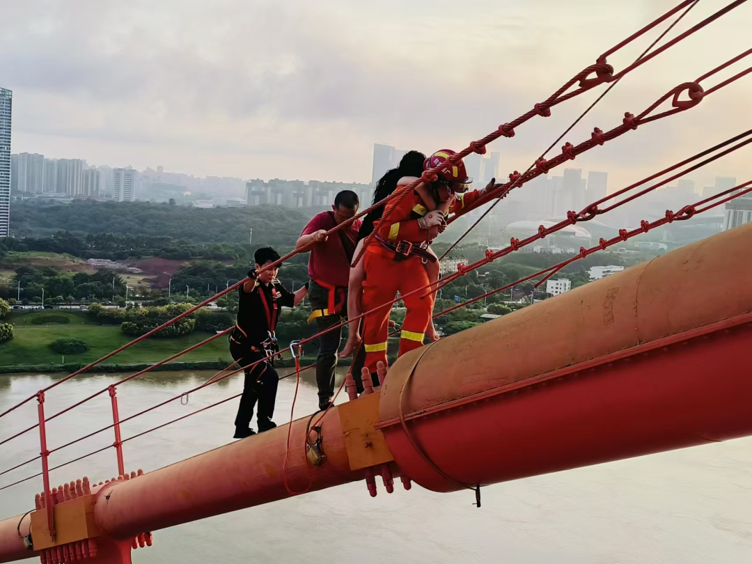 2022年5月,南宁蓝盾应急心理救援中心成立;2024年5月,南宁市应急心理救援志愿者协会成立,二者是两块牌子,一套人马,共有400多名志愿者加入,他们致力于心理危机处置等各项救援。叶映雪是该志愿者组织带头人,也是南宁市应急心理救援志愿者协会的会长。在南国早报全媒体记者采访时,她还不停地接到并处置“案情”。叶映雪说:“这是我们的常态,24小时待命,最多的时候一个晚上要出勤3次。”今年8月的一个雨天,一名女子因家庭矛盾服了安眠药,爬到南宁邕江一座桥的桥索上。叶映雪与志愿者安全员赶到后,通过心理疏导,并与消防员配合,他们在很短的时间内成功解救了该女子。叶映雪说,处置这类“案情”必须抢时间,因为类似这名女子同意他人靠近时,已意识不清,如果救援再晚一点,后果不堪设想。