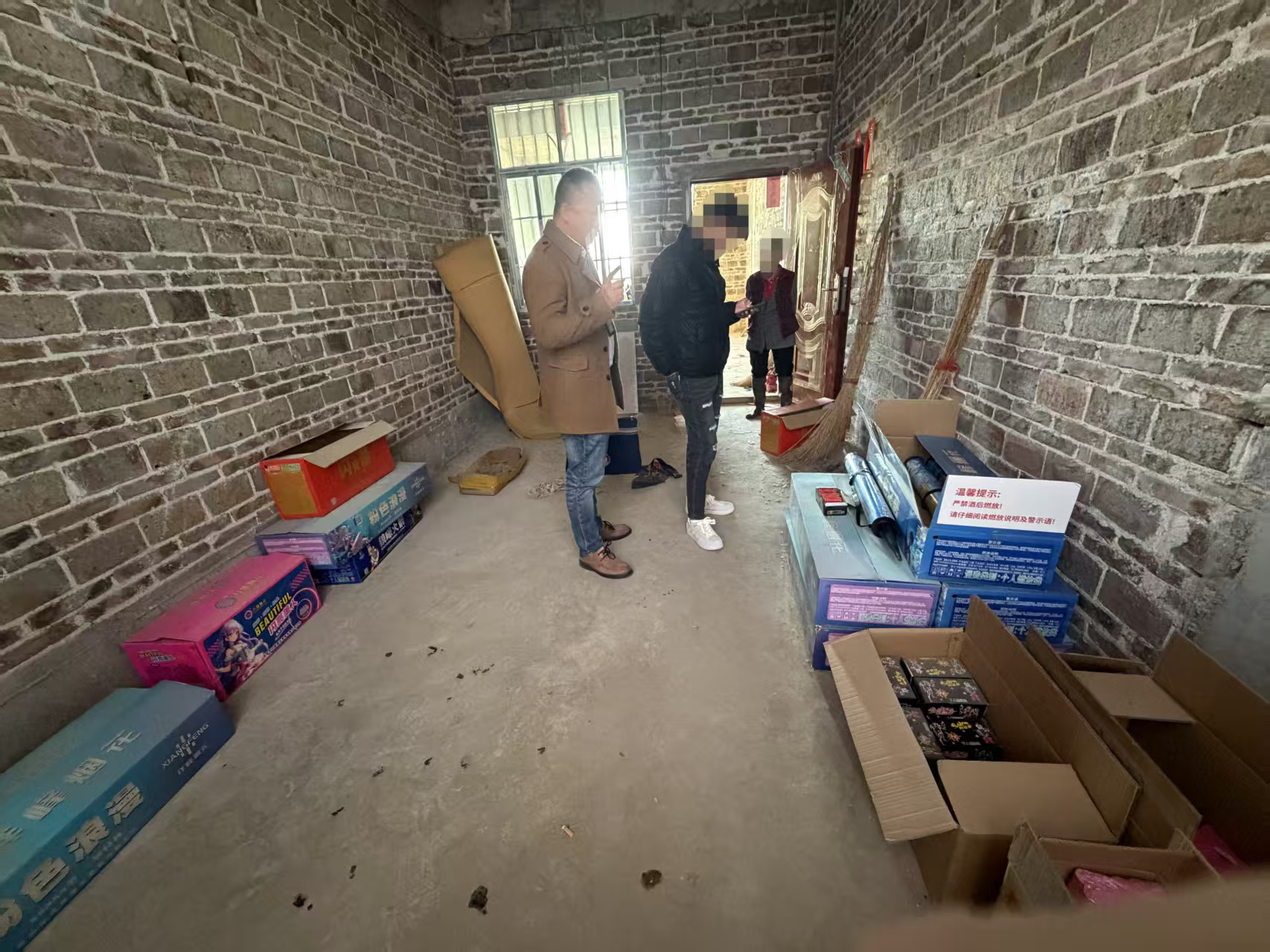 案例十:1月25日,玉林市陆川县应急管理局联合陆川县公安局治安大队、县市场监督管理局、米场镇政府开展烟花爆竹“打非治违”工作,在米场镇排查中打击一处非法储存烟花爆竹窝点,现场查扣各类非法烟花爆竹产品273件(箱)。