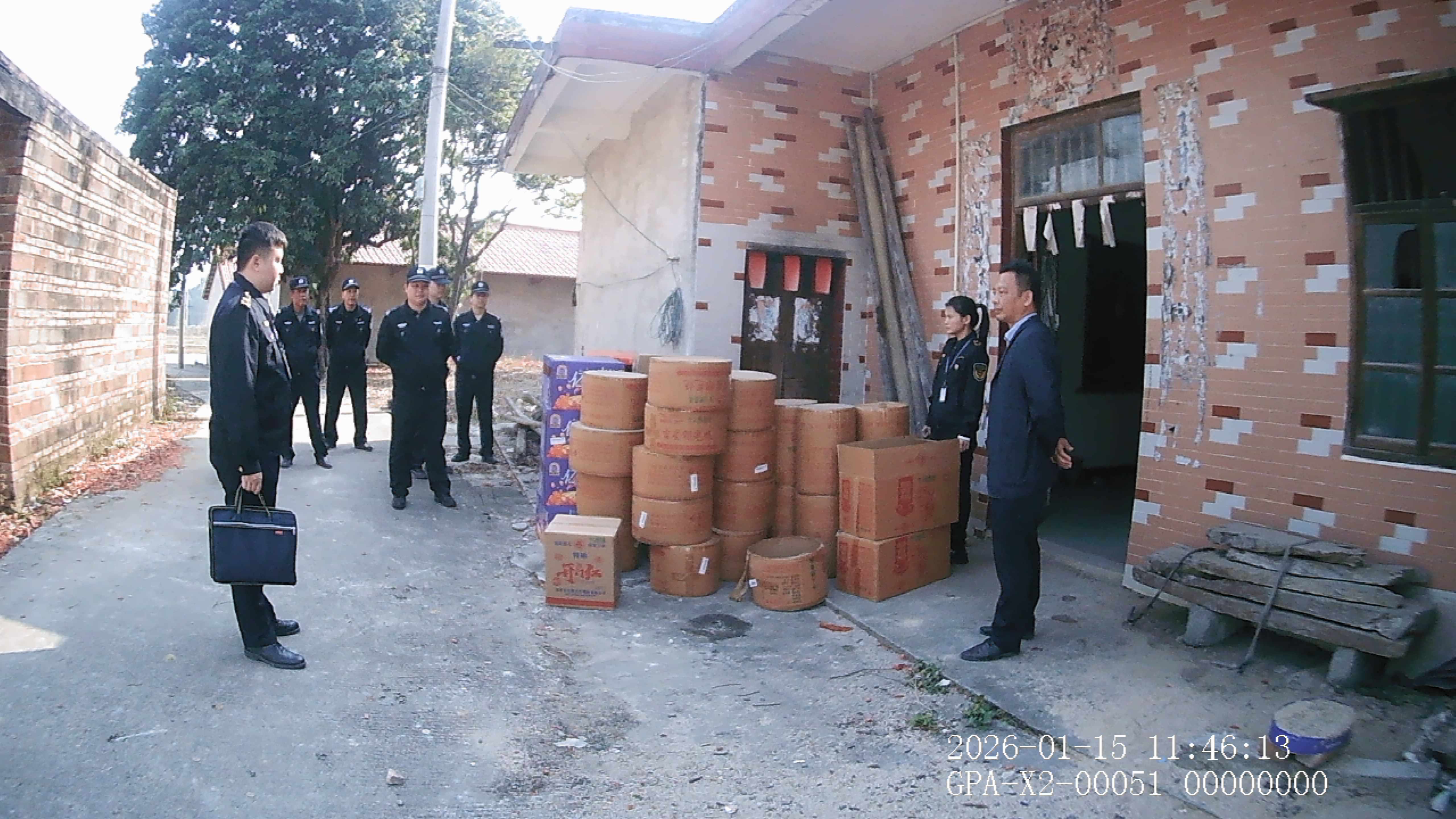 案例八:1月16日,玉林市容县应急管理局、容县公安局灵山派出所联合开展烟花爆竹“打非”工作,查处非法储存烟花爆竹1起,收缴非法烟花爆竹产品18件,容县应急管理局依法对非法烟花爆竹产品进行扣押,公安机关依法对违法行为人黄某某行政拘留。