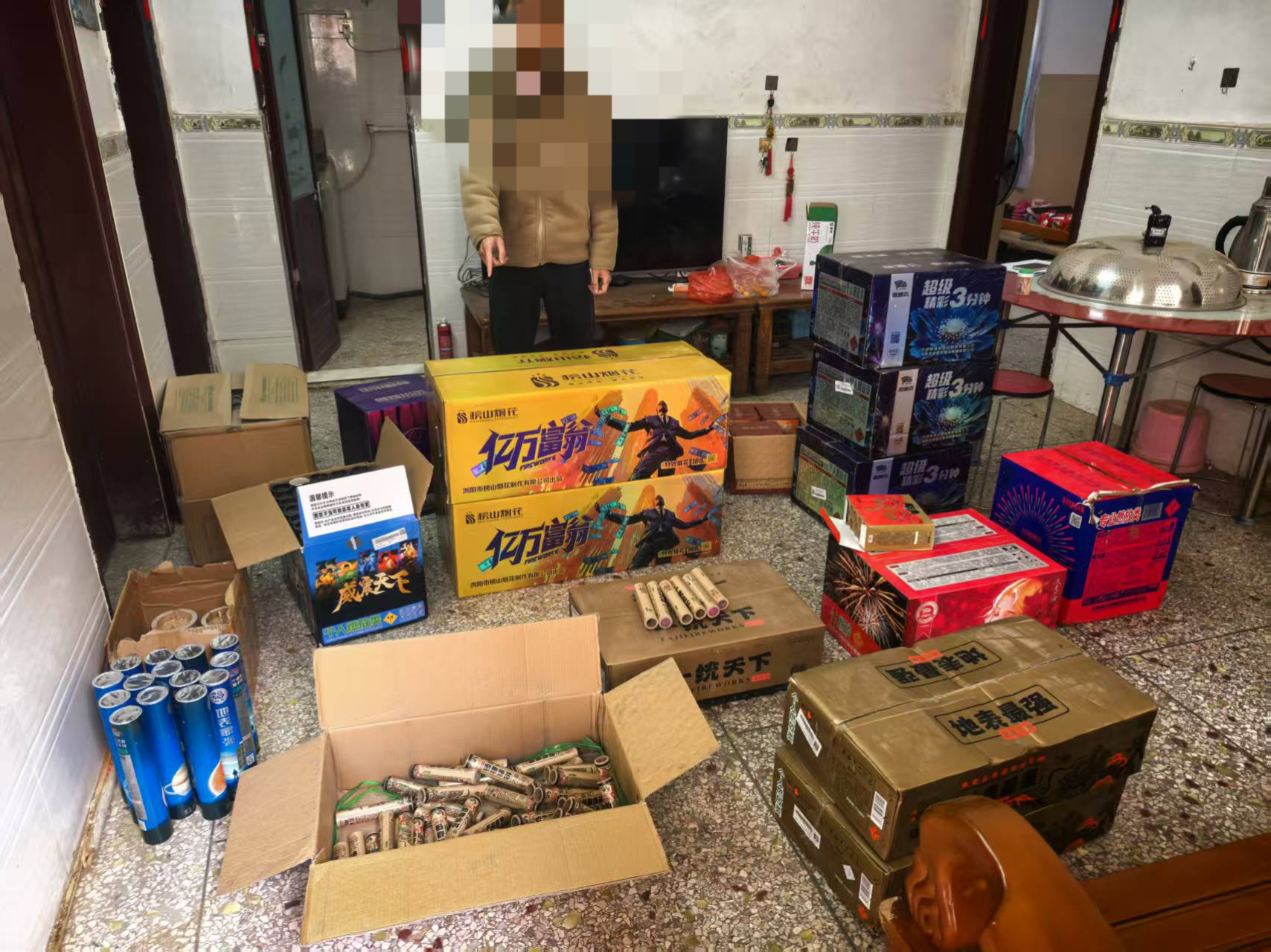 案例三:1月8日,根据群众举报线索,玉林高新区规划建设和应急管理部经两次现场核查,在玉林市玉州区茂林镇永安村(禁燃区)某自建房内发现并收缴非法储存烟花产品4件。