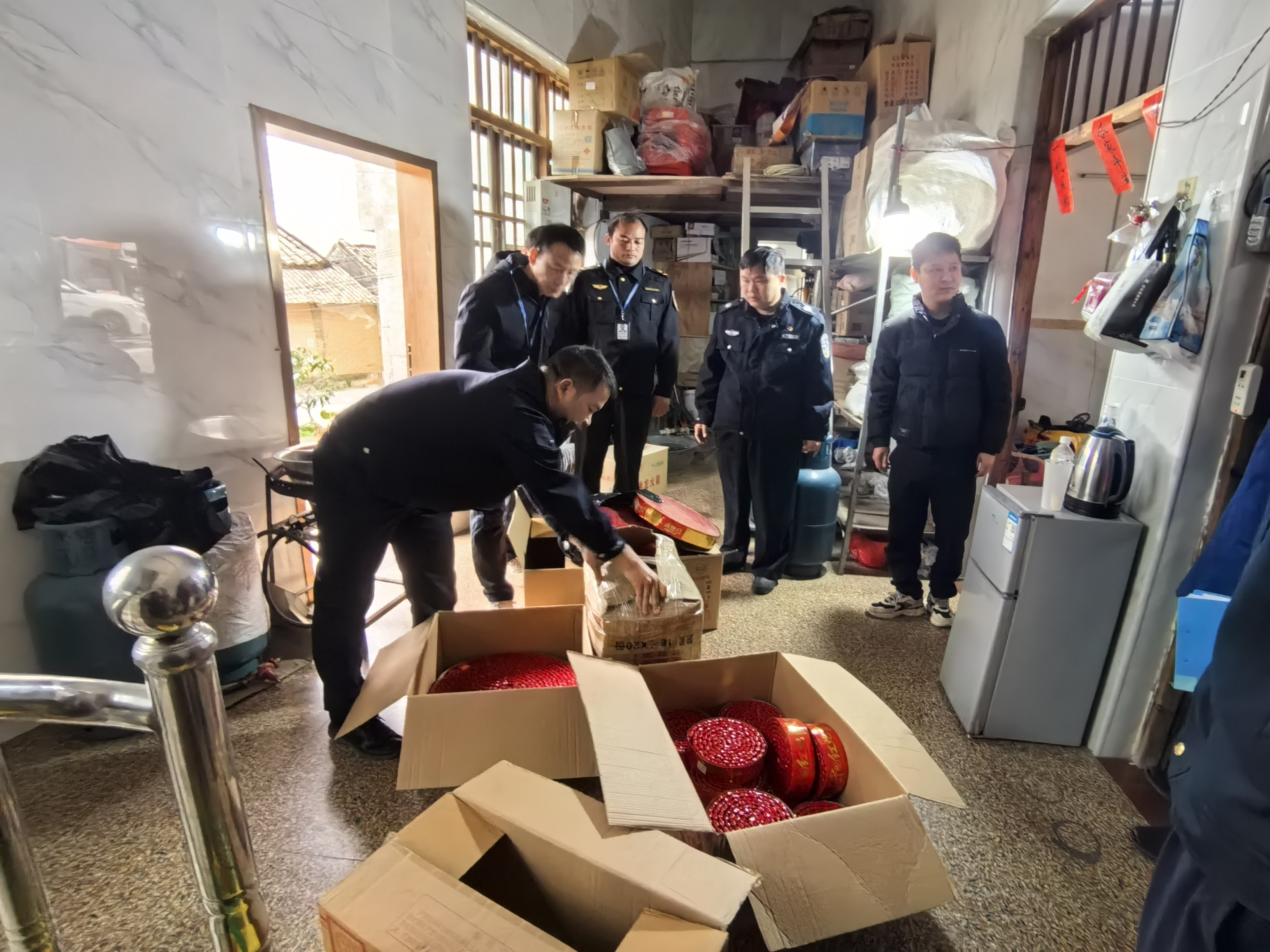 案例五:1月9日,玉林市容县应急管理局、容县公安局杨村派出所联合开展烟花爆竹“打非”工作,查处非法储存、经营烟花爆竹行为2起,收缴非法烟花爆竹产品31件。目前案件正在进一步处理中。
