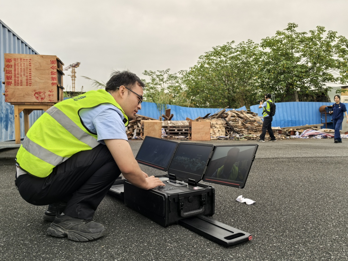 无人机飞手对“灾害”现场开展全域航拍采集。
