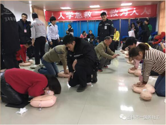 2018年10至今,玉林市急救中心已成功举办5期急救及防治非职业性一氧化碳中毒知识培训班,培训班为市民学习急救知识、技能培训提供良好的学习环境,通过现场模拟,学员参与趣味互动等途径传播应急知识,除了传统的心肺复苏项目外,针对CO中毒严峻性的问题,开展了预防CO中毒相关知识的专题培训,另外增加了市民渴望学习到的气道异物处置方法——海姆立克急救法。