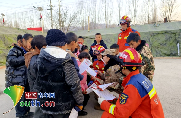 图为消防救援大队为灾区儿童讲故事。石肖 摄