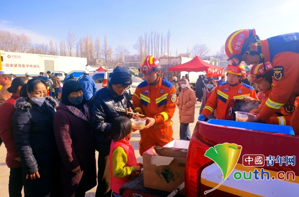 灾后安置 消防救援大队搭帐篷送拉面守护孩子暖众人