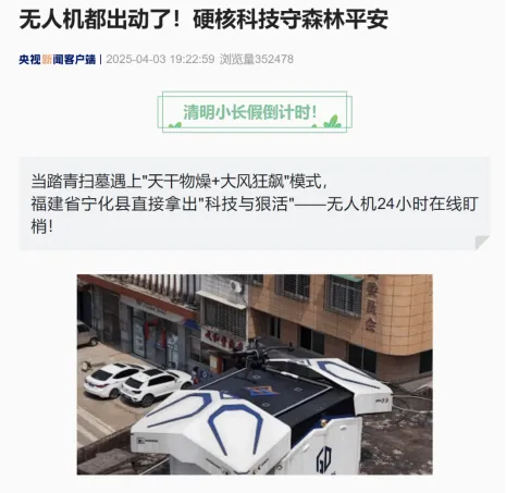 3.福建宁化县无人机巡护助力森林防火:高空喊话侦查火情 覆盖半径接近10公里