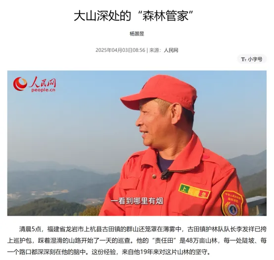 2.福建古田镇护林员:看到烟点就犯职业病 林地火情5分钟到达处置