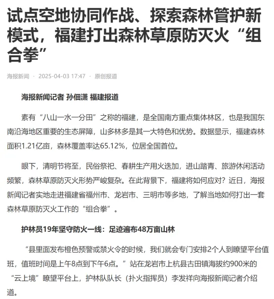 1.试点空地协同作战、探索森林管护新模式,福建打出森林草原防灭火“组合拳”