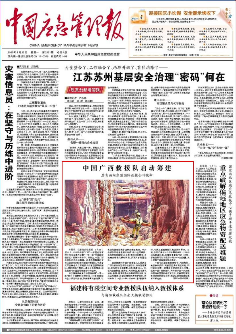 9月18日至19日,2025年中国(广西)—东盟应急管理合作与发展大会暨“一带一路”应急救援演练在广西南宁市举行。活动上,中国广西救援队正式启动筹建。这是我国筹建的首支以省份命名的联合国国际救援队,也是首支深度融合人工智能技术的重型国际救援队,将积极践行国际人道主义救援精神,肩负起面向东盟国际救援合作的使命。