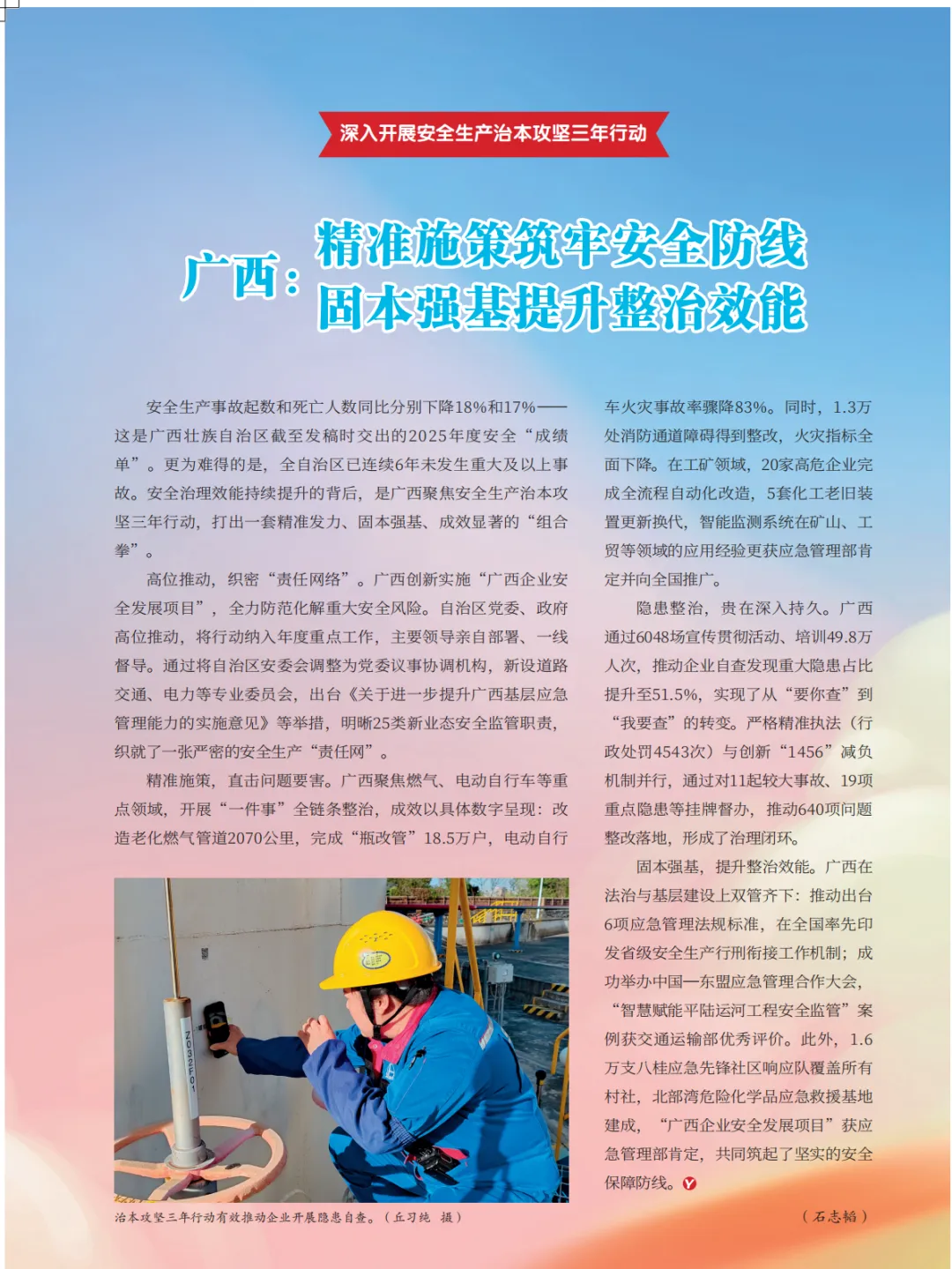 《中国应急管理》杂志2025年第11期出版刊发《广西:精准施策筑牢安全防线 固本强基提升整治效能》,全文如下——
