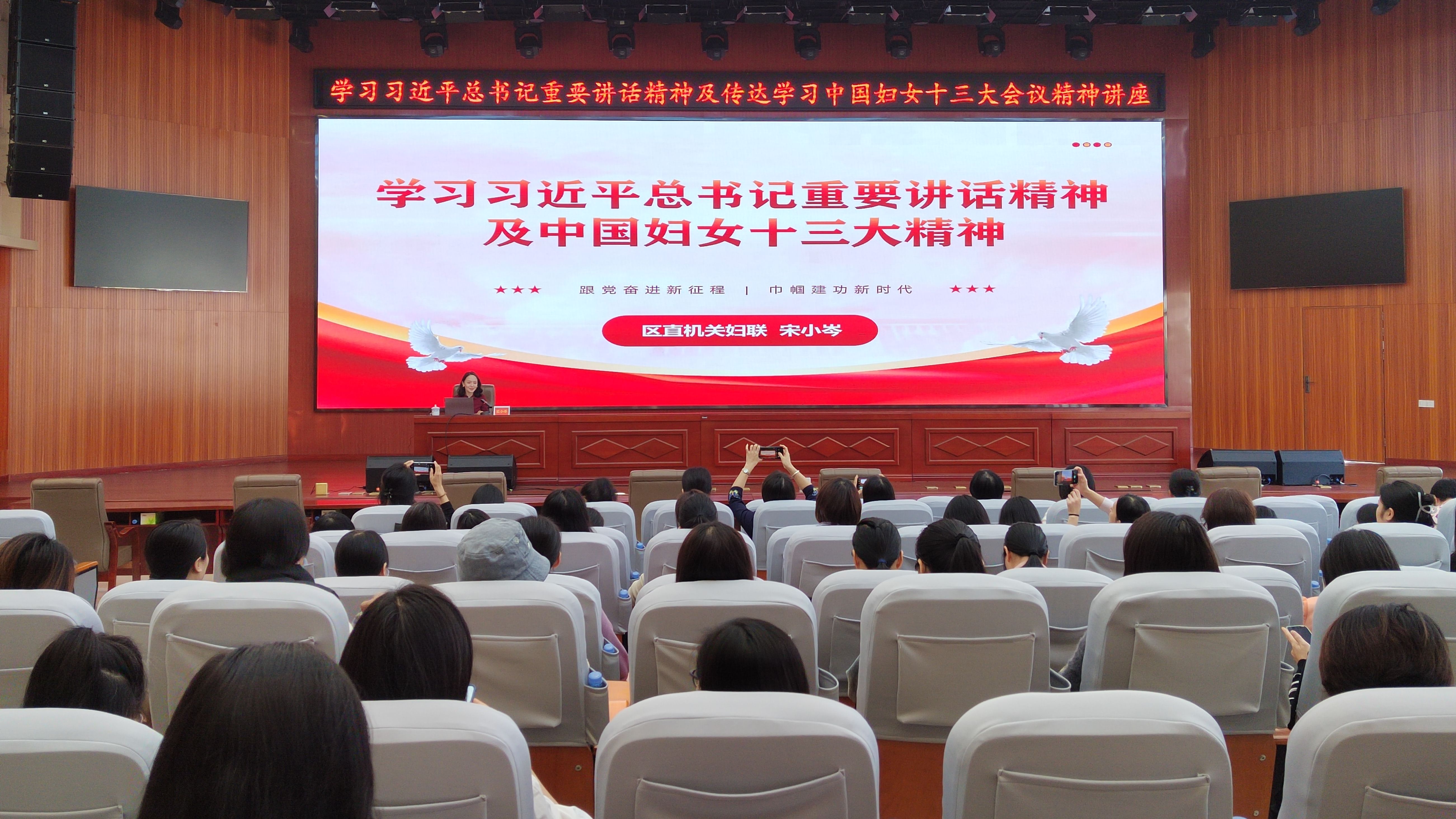 讲座以“学习贯彻习近平总书记重要讲话精神及中国妇女十三大精神”为主题,完整、全面地传达学习贯彻习近平总书记同全国妇联新一届领导班子成员集体谈话时的重要讲话精神和中国妇女十三大精神,阐释党中央致词的丰富内涵和重大意义,并对学习宣传贯彻中国妇女十三大精神提出了具体的要求和指导意见。