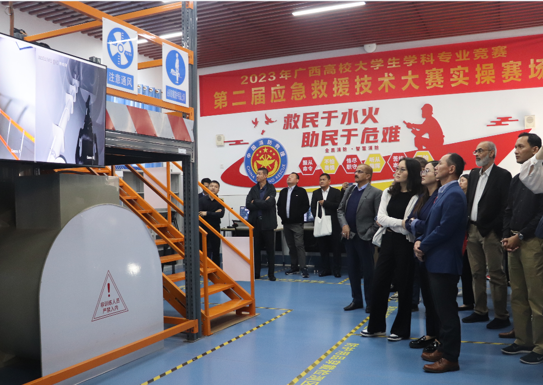 12月7日上午,2023中国—东盟应急管理(安全生产)合作论坛配套活动亚行技术援助“具有成本效益的灾害风险管理综合框架项目”终期研讨会成员来到广西安全工程职业技术学院开展考察活动。