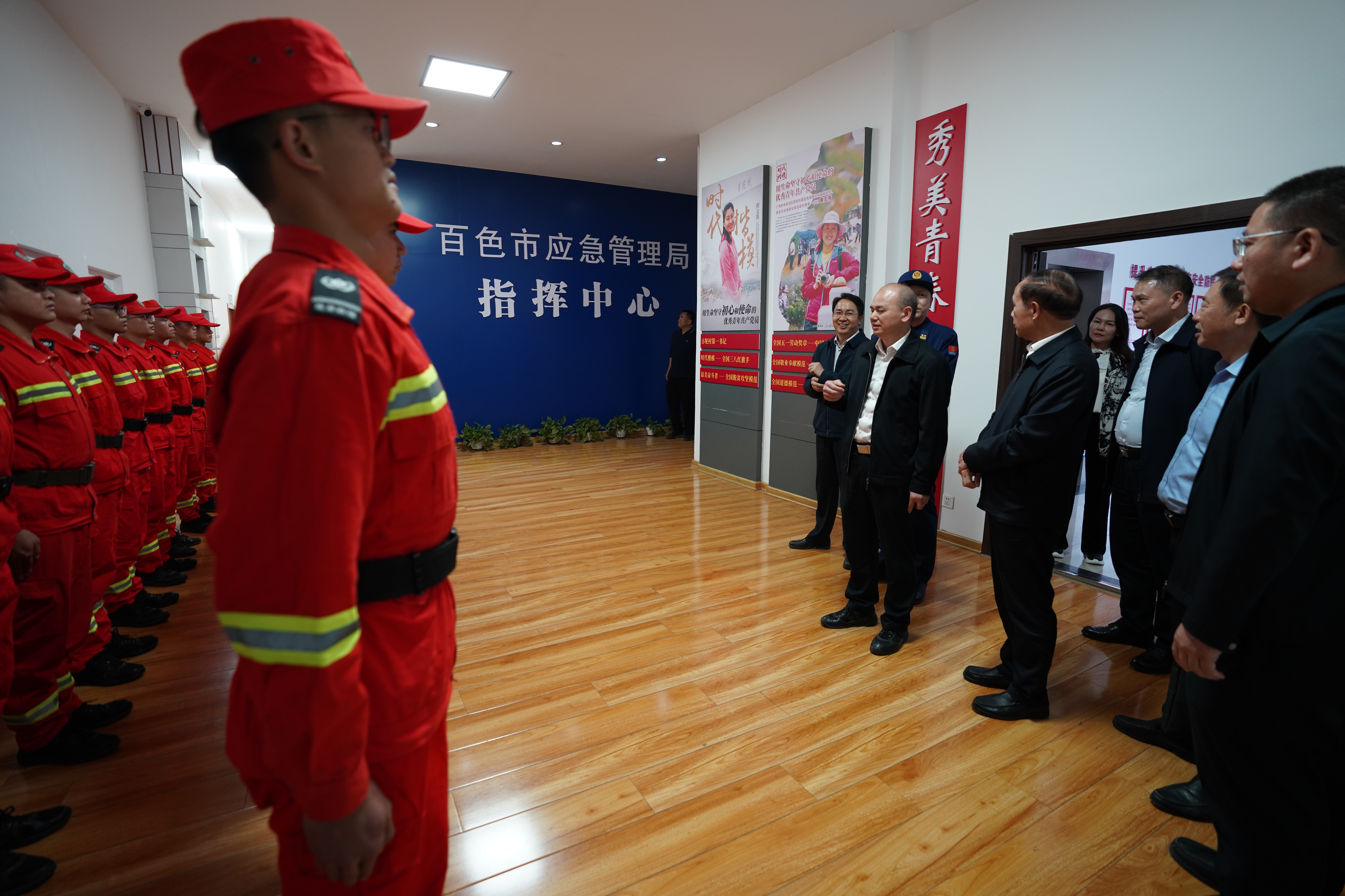 12月9日至10日,自治区应急管理厅党委书记、厅长周长青率调研组到百色市检查指导应急管理工作。百色市委常委、副市长李玉成陪同。