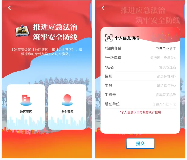第一步:选择身份属性,分为地区赛区及央企赛区,该项为必选项。