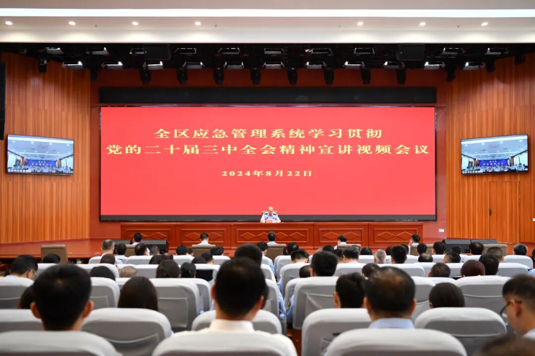 全区应急管理系统宣讲党的二十届三中全会精神视频会议现场。