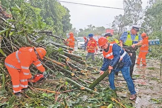 9月7日,自治区防城公路养护中心组织力量清除路障,保障道路安全通畅。覃鹏/摄