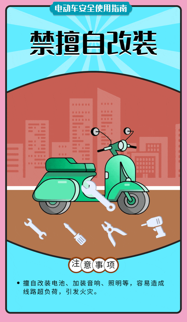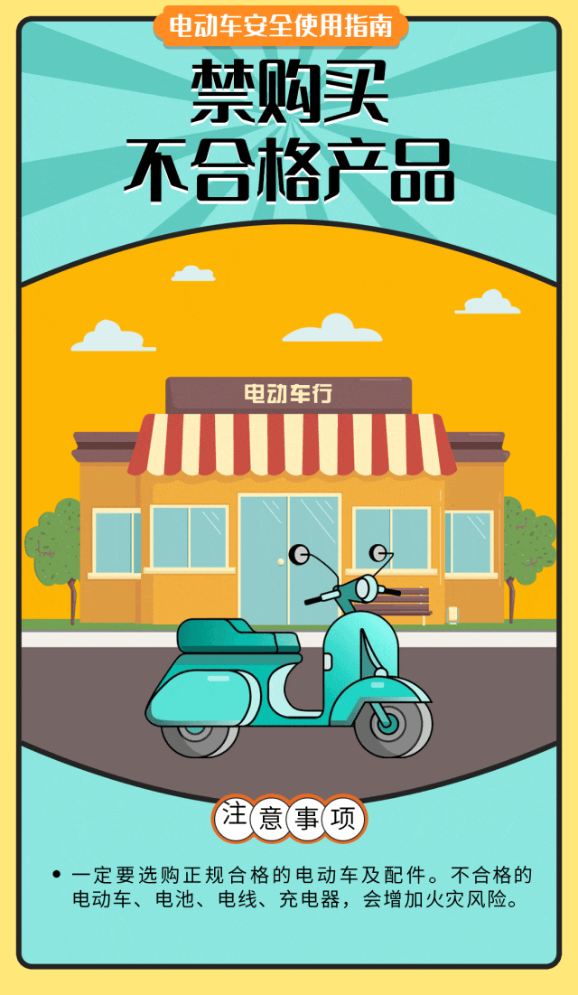 为了您和他人的生命安全请勿心存侥幸!拒绝电动自行车进楼入户,不要违规私接充电线路,不要盲目改装电动自行车,加强日常自查自检,不要在网上购买没有品牌,没有质量保障的电动自行车,以下知识,请大家一定要牢记!