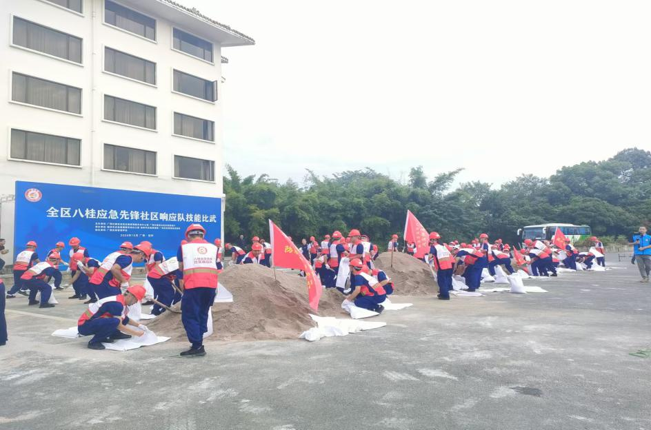 全区八桂应急先锋社区响应队技能培训暨比武活动现场。