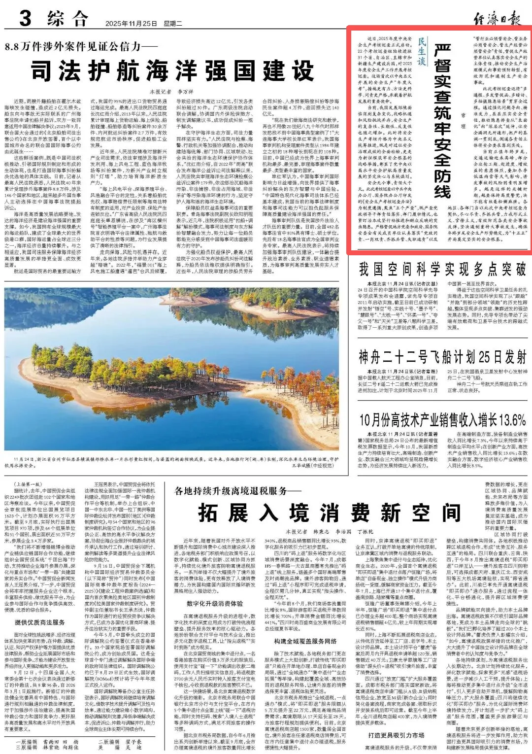 当前正值年终岁尾,交通运输迎来高峰,部分企业抢工期、赶进度、增效益的意愿强烈,叠加冬季低温雨雪等天气影响,诱发事故的风险因素明显增多。越是这样的关键时期,越要保持高度警觉,决不能有丝毫松懈麻痹。各地区、各部门当以此次中央考核巡查为契机,尽心尽责、齐抓共管,力戒形式主义、官僚主义,有效防范各类安全事故反弹,坚决遏制重特大事故发生,确保年终岁尾安全生产形势稳定,为“十五五”开局奠定坚实的安全根基。