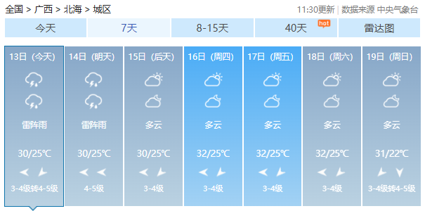 广西气象台13日12时发布预报