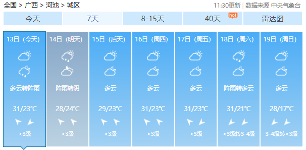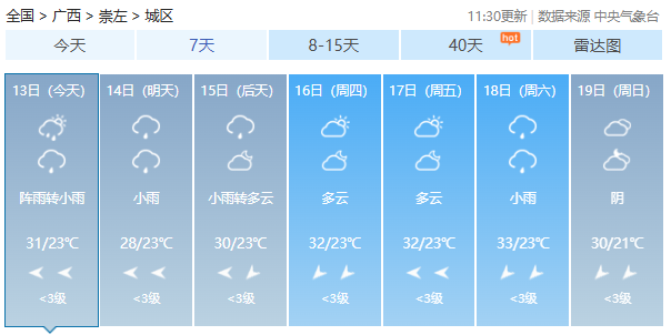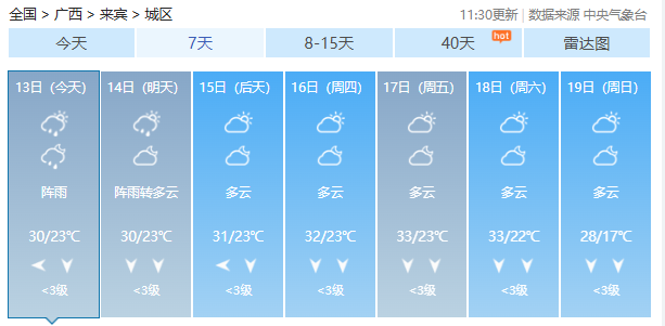 今起7天广西14市天气预报