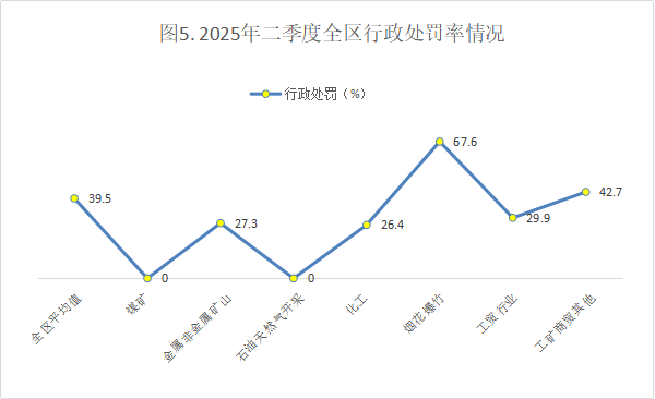 二季度全区共实施行政处罚700次、行政处罚率39.5%,其中烟花爆竹分别为288次、67.6%,工贸分别为183次、29.9%,