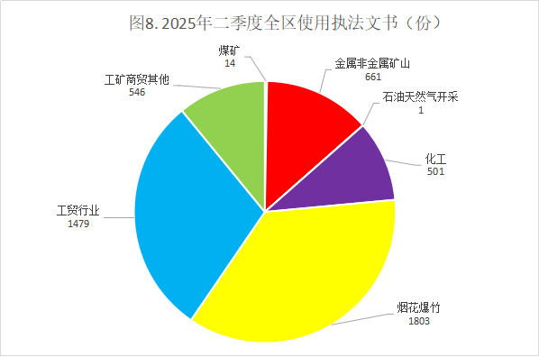 二季度全区各级应急管理部门共下达各类执法文书5005份。详见图8。