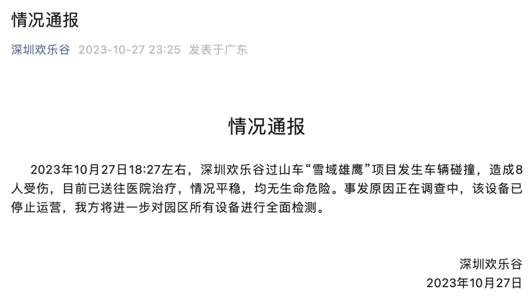 2023年6月6日,河北秦皇岛南戴河国际娱乐中心停电,过山车设施停止运行,垂直悬挂半空,数名游客头朝下被困在轨道上。据了解,停电后,景区启用备用电源,启用过程大概用了12分钟,共有11名游客被困在过山车上大概20分钟,随后都被安全救下。