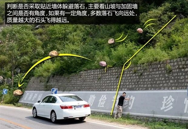 当前方有车辆滞留,或是有石块拦路,应果断弃车逃离,不要躲在车内。在落石面前,汽车的风挡玻璃和车顶不堪一击,一旦车辆被压变形,人被卡在车内,脱困将更加困难。