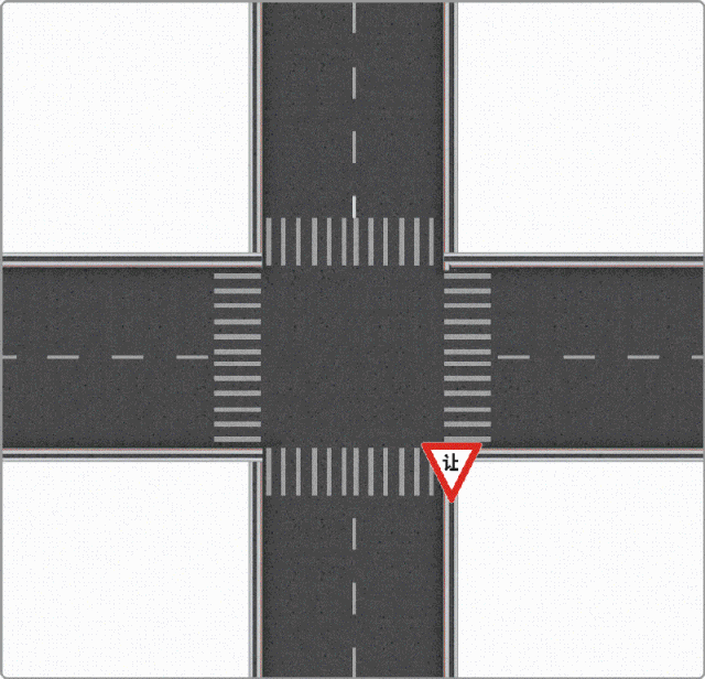 根据道路通过优先级不同,有些路口会设置让行标志。行驶过程中看到有“让行标志”的一方需让行,即白色车要让棕色车先行。