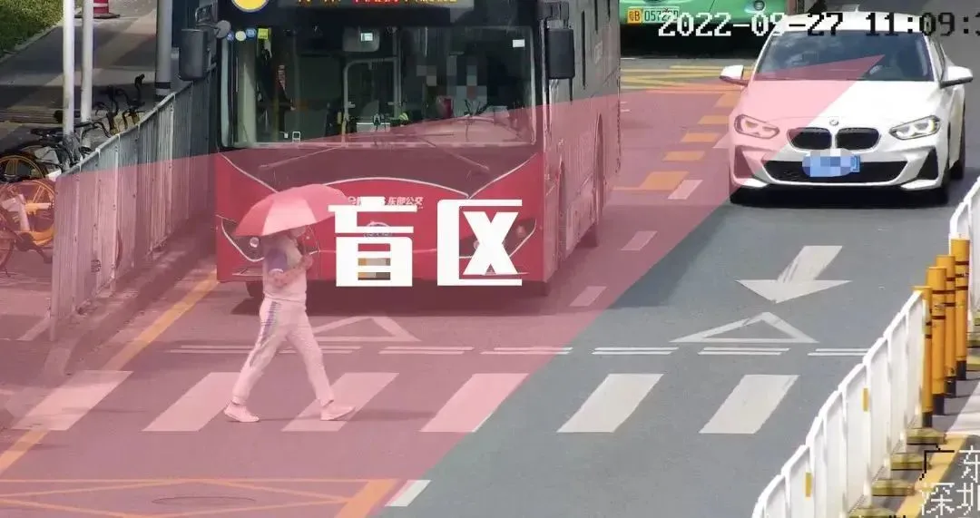 无论是大型车辆还是小型车辆,都会存在视线盲区。遇转弯时一定要左右转头、留心查看,减慢车速。