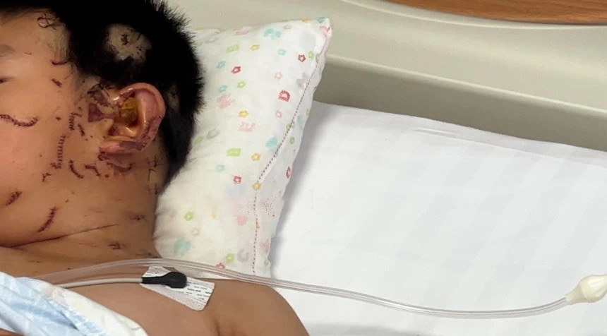 9月10日,记者在病房见到浩浩时,他脸部的伤口已经结疤,大大小小约30处伤口。目前,浩浩已恢复了各种行为能力,精神状态良好。
