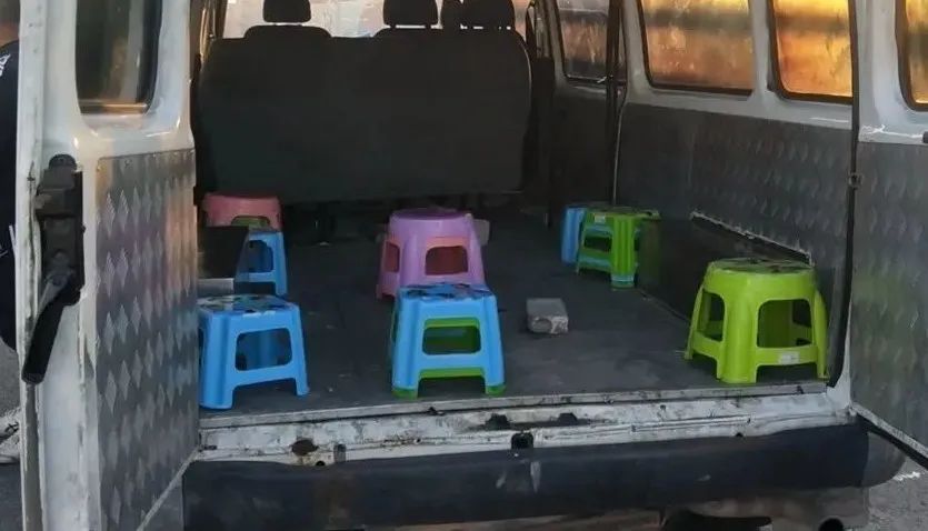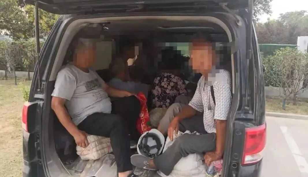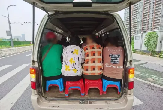 8月15日,佛山交警禅城大队民警查获了一辆超员面包车。车门打开后,民警发现核载9人的面包车内,竟然密密麻麻挤了19人,超员100%以上。经查,该面包车内部进行了改装,前两排座椅旁的空位增加木箱为座位,第三排座椅被更换为一张无靠背长凳,最后一排摆了4张塑料凳,乘客背部紧贴尾门。