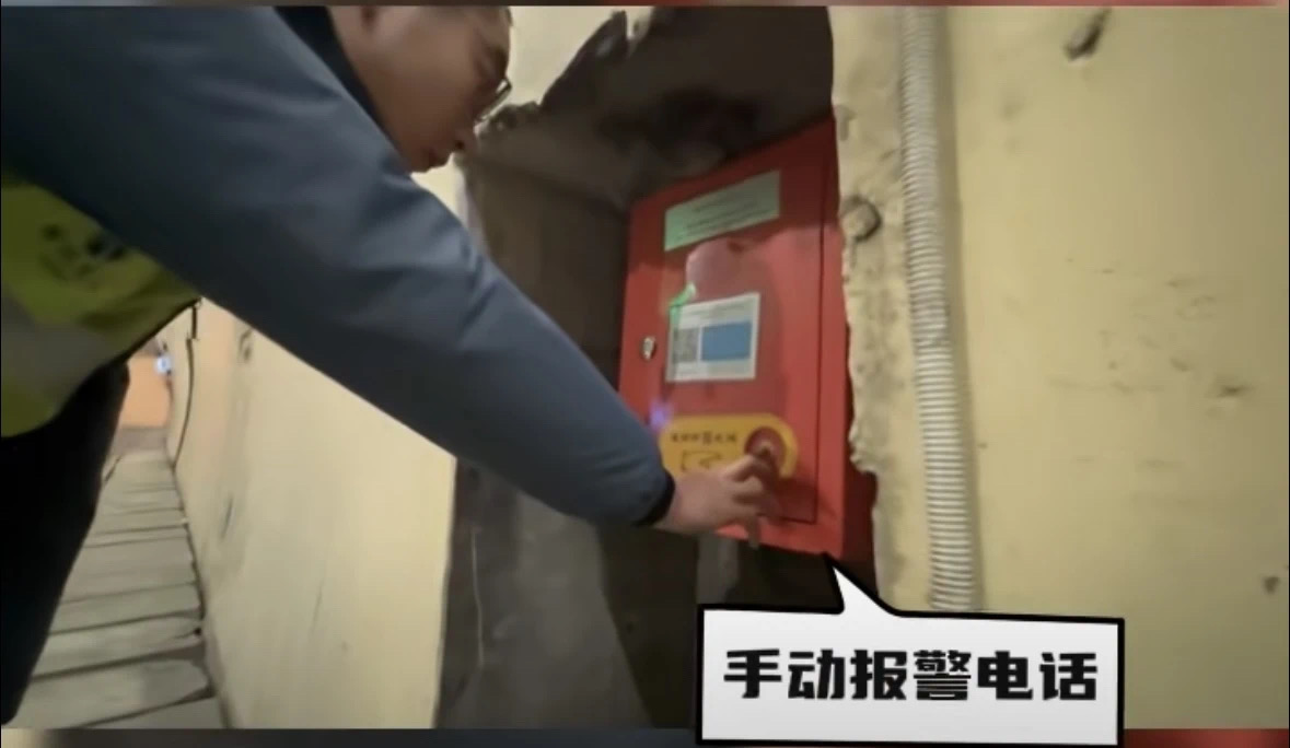 隧道内一般每隔一定距离设有手动报警按钮。图源:杭州消防