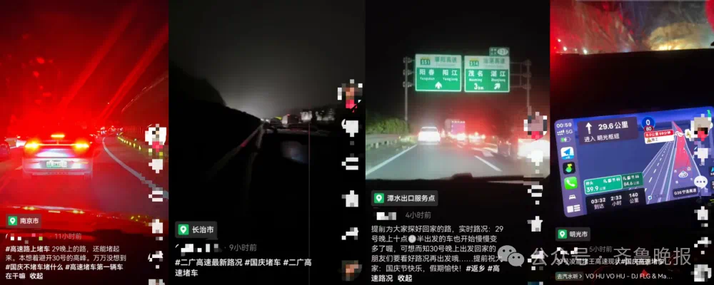 很多网友晒出高速多个路段的堵车视频