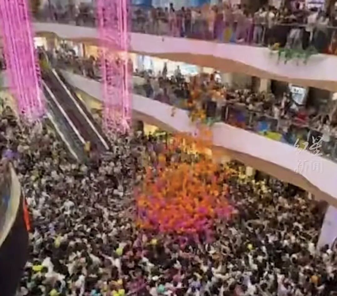 河北省任丘市一商场举办七夕活动,现场发放“气球雨”时发生哄抢,事后有人反映,称自己被挤压险些窒息。