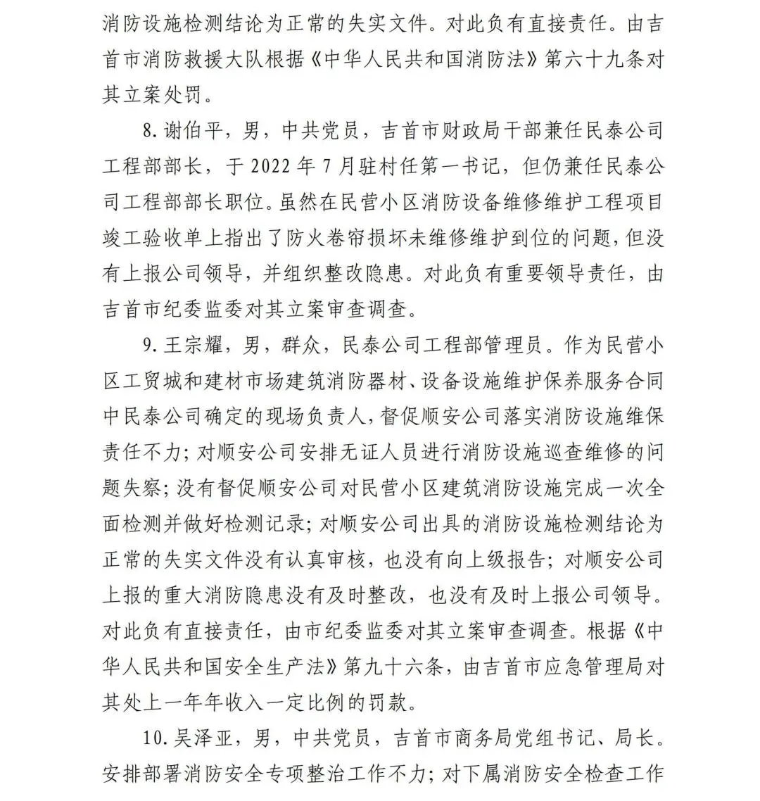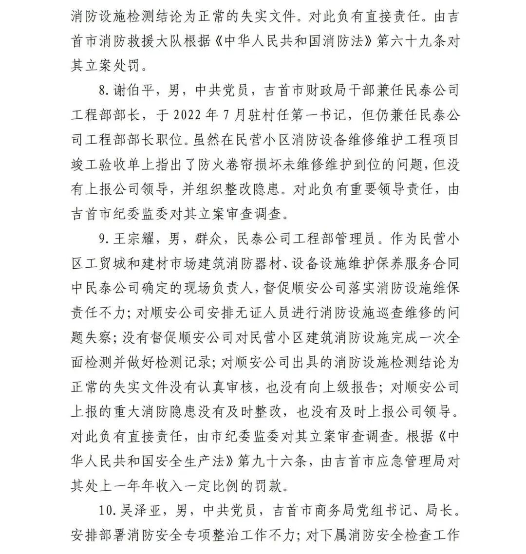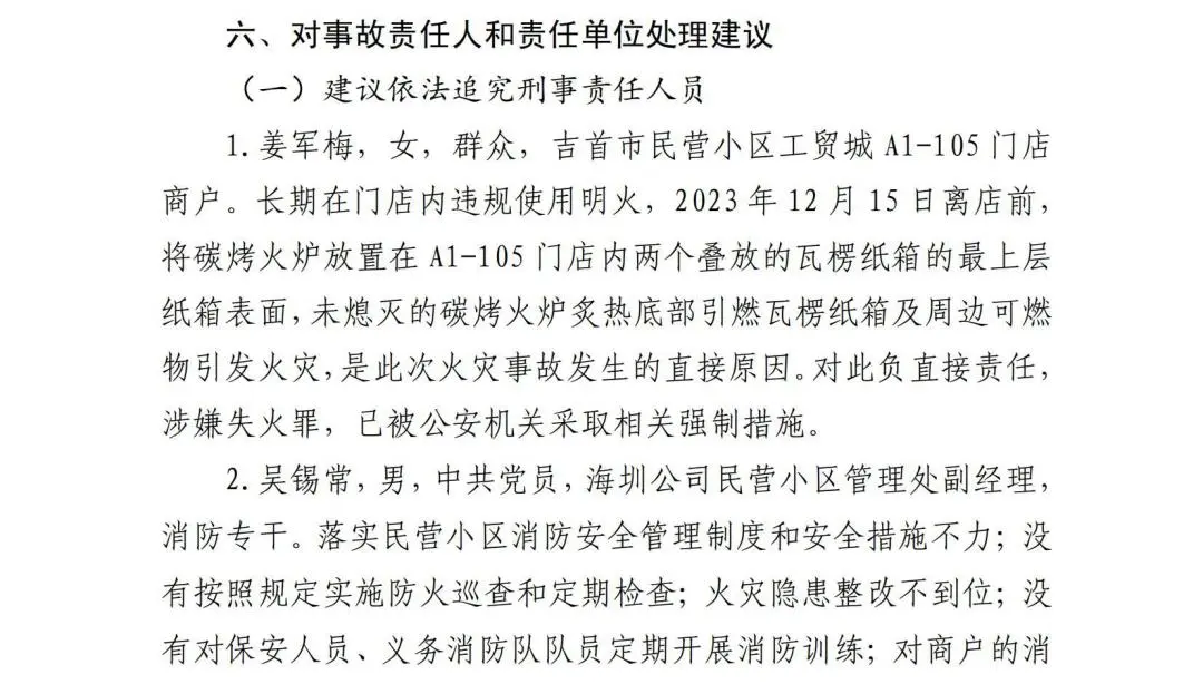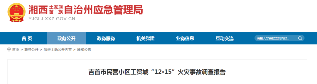 近日,湖南省湘西土家族苗族自治州应急管理局发布吉首市民营小区工贸城“12·15”火灾事故调查报告。