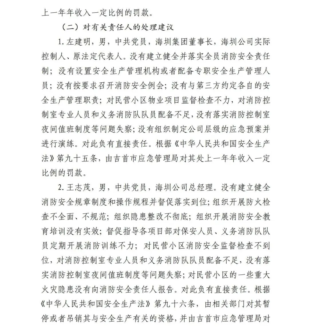 报告发布对事故责任人和责任单位的处理建议,包括4名刑事责任人员,20名有关责任人,5家有关单位。
