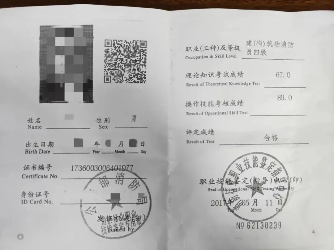 2024年2月3日,浙江台州椒江区下陈街道宏地智能科创园消控室值班人员付某使用伪造的四级建(构)筑物消防员证上岗。检查人员将该人的证件信息录入到国家职业资格证书平台,无法查询到相关信息。该人员使用伪造证件,被拘留12日。