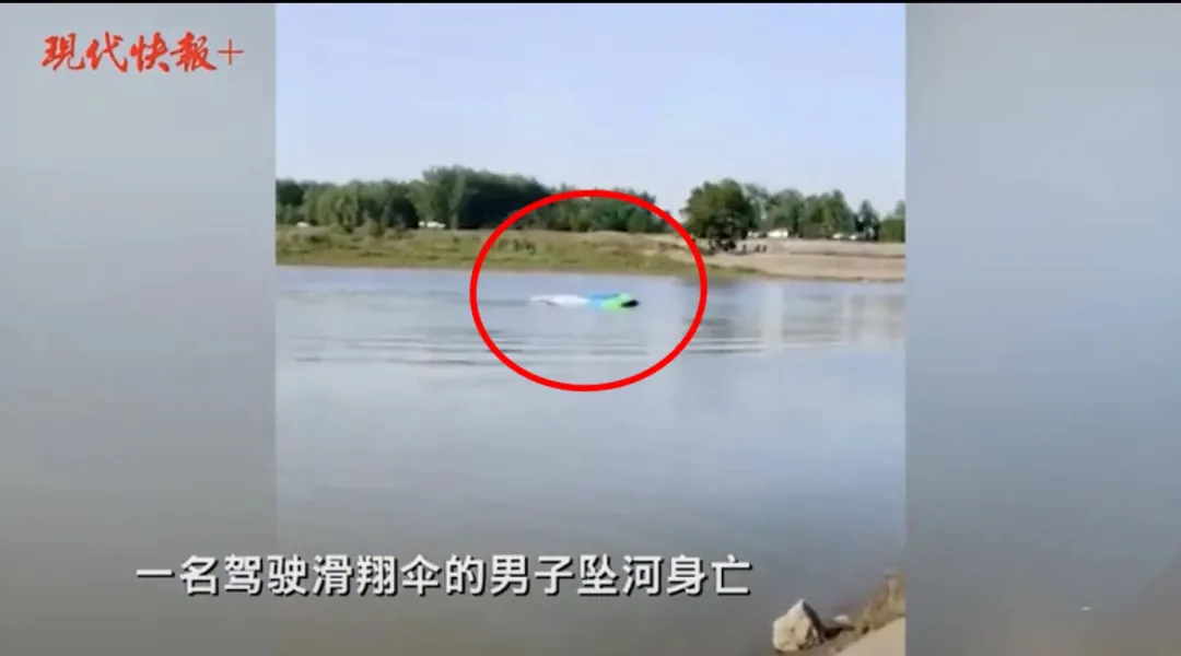2021年5月9日,江苏南京江北马汊河口,一名男子驾驶滑翔伞失控坠入河中,不幸身亡。