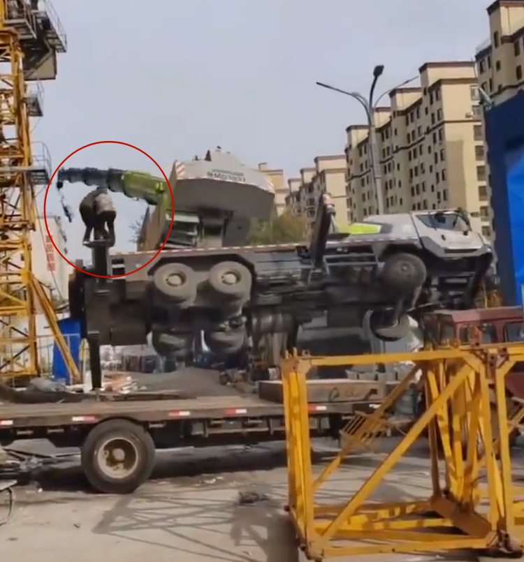 10月10日,黑龙江省绥化市某工地上一吊车作业过程中发生倾倒,致2名工人腾空后摔下受伤。据悉,事故原因为工地吊车作业时,2人违规站在吊车配重位置,导致吊车车体侧翻,所幸2人无生命危险。